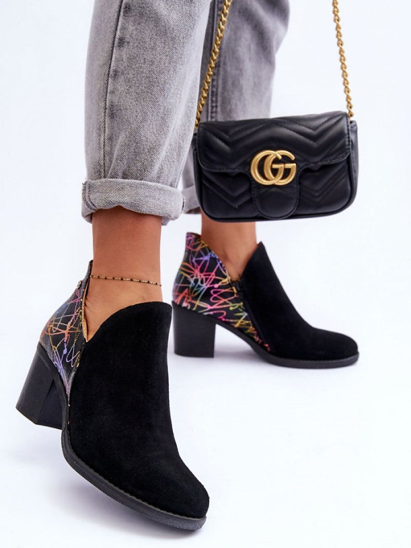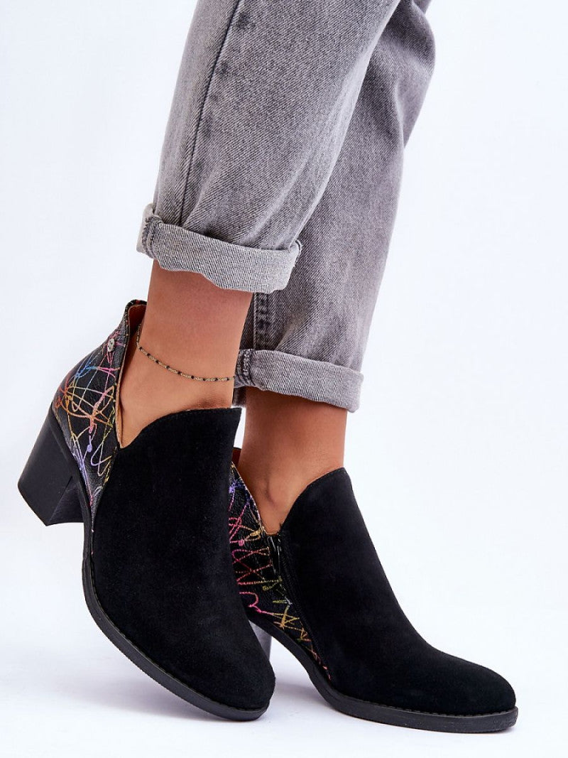 Botine cu toc Step in style, Model 183998, Negru - material piele nubuc naturală Footbed piele naturala Înălţimea carâmbului 10 cm Înălţimea tocului 10 cm
