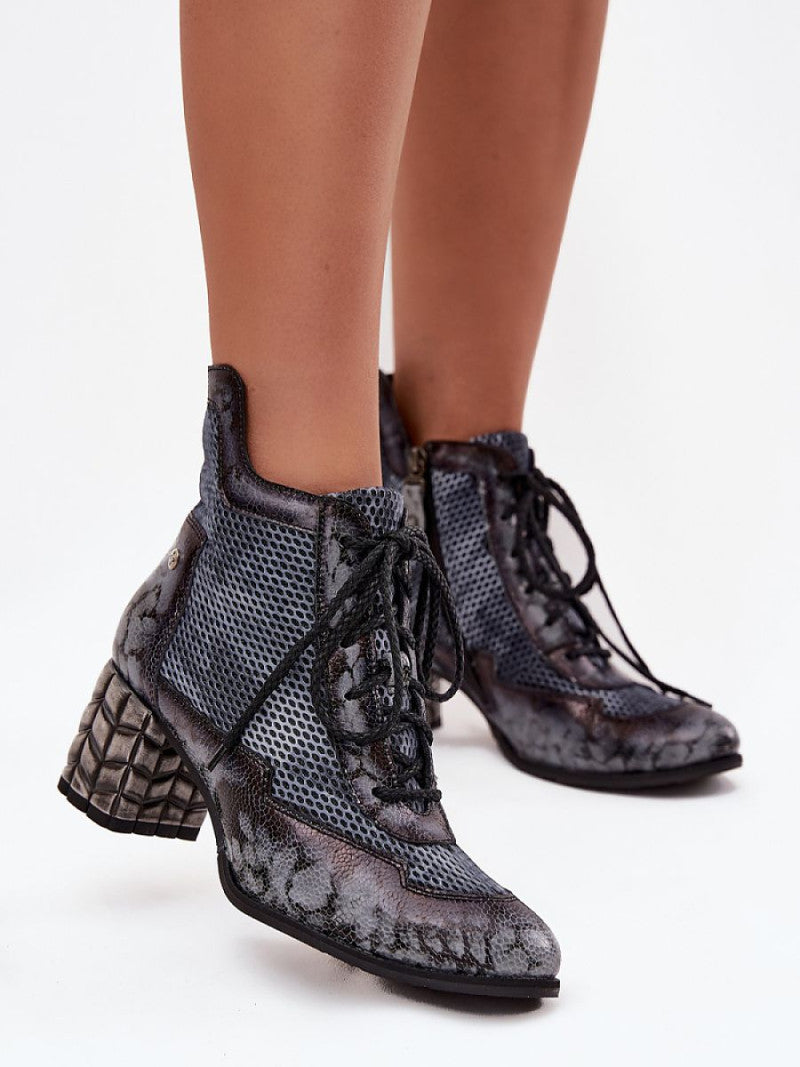 Botine cu toc Step in style, Model 219582, Gri - material piele naturala Footbed pânză Înălţimea carâmbului 13 cm Înălţimea tocului 6.5 cm