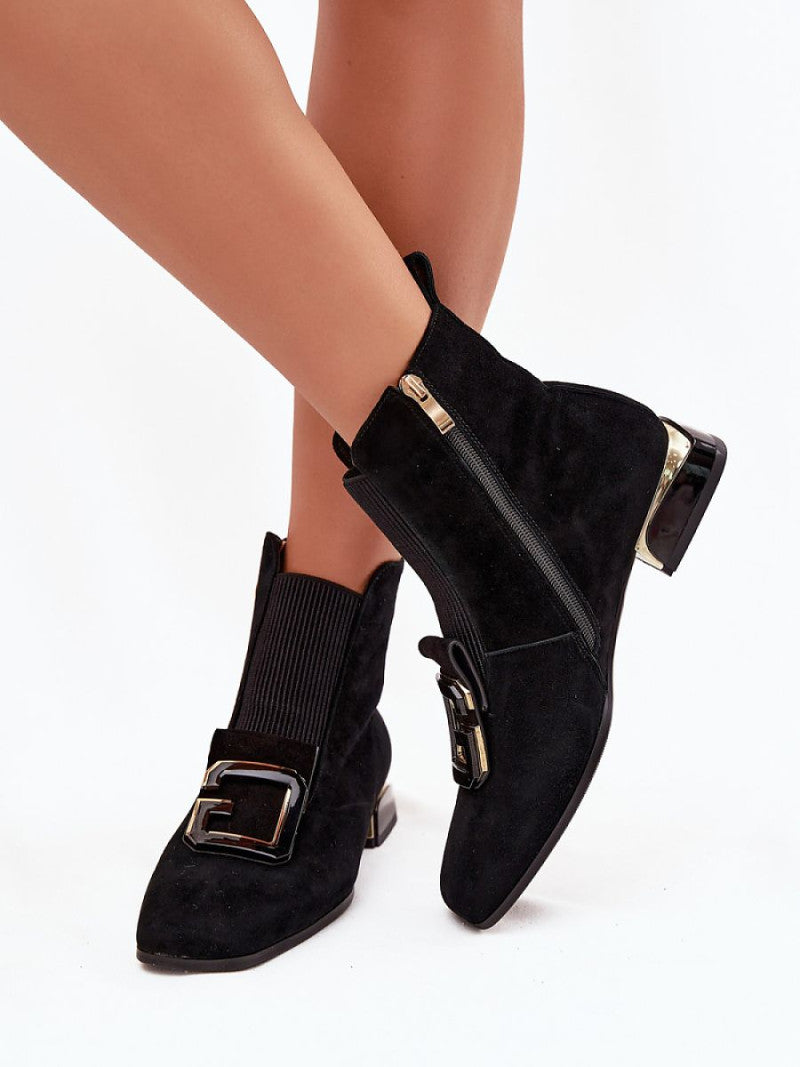 Botine cu toc Step in style, Model 220202, Negru - material piele naturală de căprioară Căptușeală pătură de pantofi Footbed pătură de pantofi Înălţimea carâmbului 12.5 cm Înălţimea tocului 3 cm