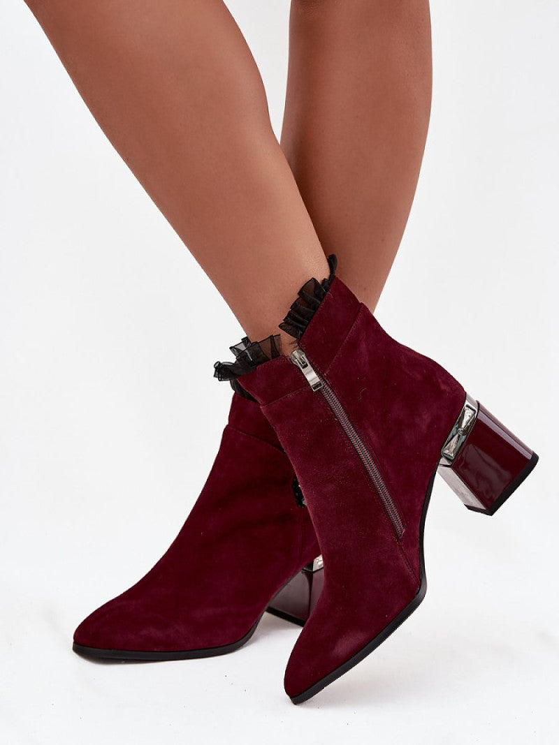 Botine cu toc Step in style, Model 221134, Roşu - material piele naturală de căprioară Căptușeală pătură de pantofi Footbed pătură de pantofi Înălţimea carâmbului 12 cm Înălţimea tocului 7 cm
