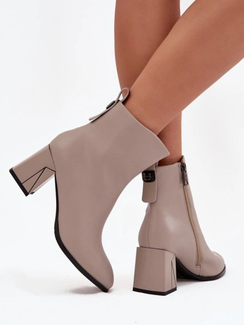 Botine cu toc Step in style, Model 222516, Gri - material piele naturala Căptușeală pătură de pantofi Footbed pătură de pantofi Înălţimea carâmbului 12 cm Înălţimea tocului 7 cm
