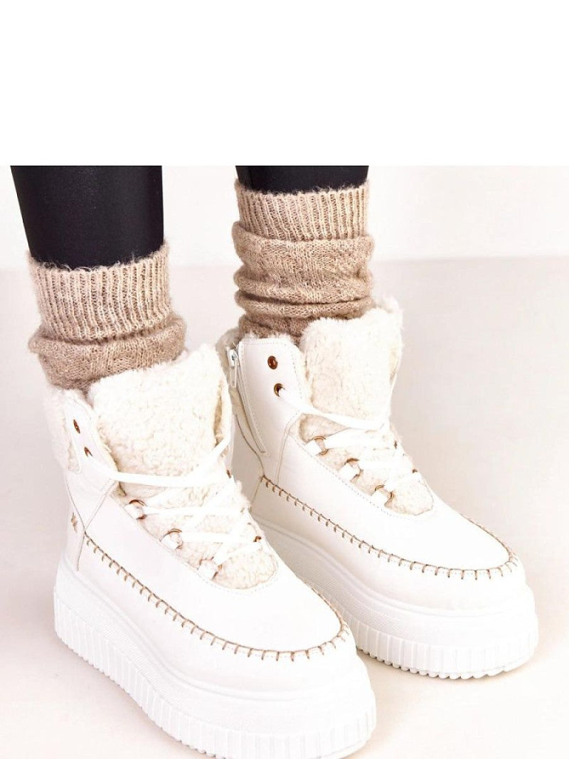 Botine sport Solea, Model 219937, Alb - material imitație de piele Căptușeală blană Footbed pânză Înălţimea carâmbului 12 cm Înălţimea platformei 6.5 cm