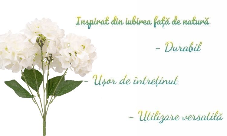 Acest buchet de hortensii artificiale adauga eleganta si prospetime oricarui spatiu.