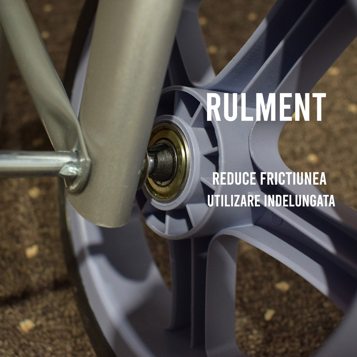Caruciorul este echipat cu roti mari, solide si rezistente