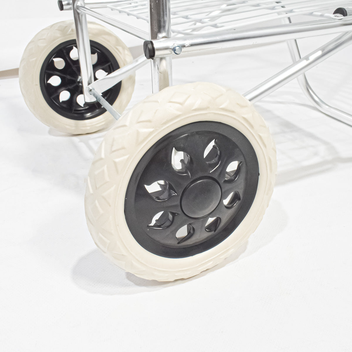 Caruciorul este echipat cu roti mari, solide si rezistente.