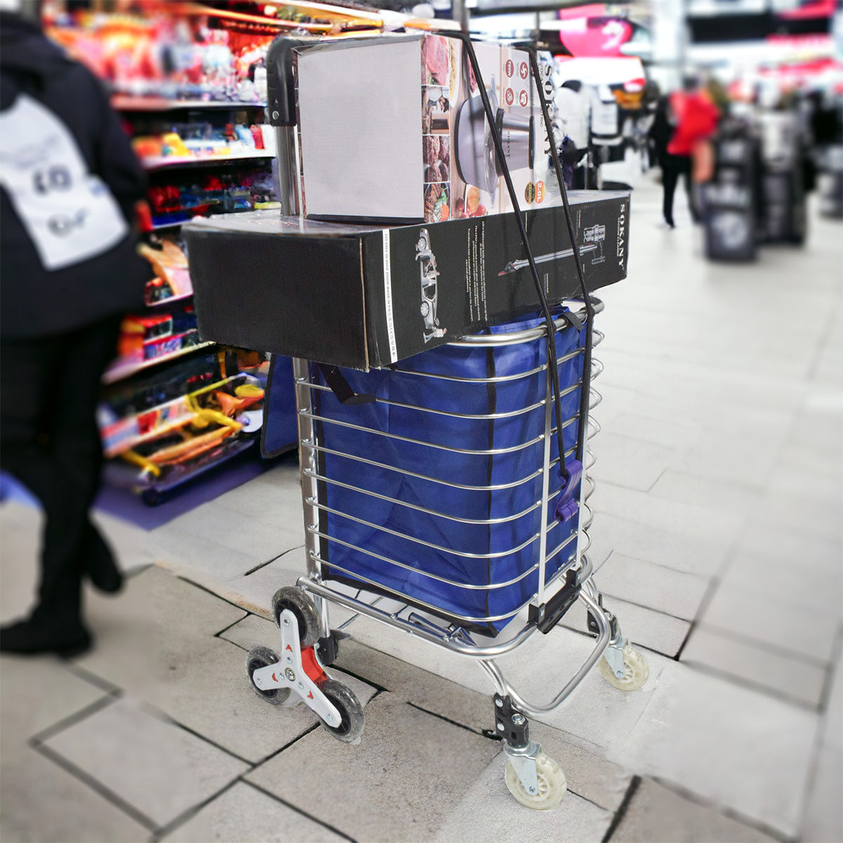 Carucior de piata pliabil, din aluminiu, Naimeed D5664, 8 roti silentioase, 30 L, 47x38x90cm, 20kg, Albastru