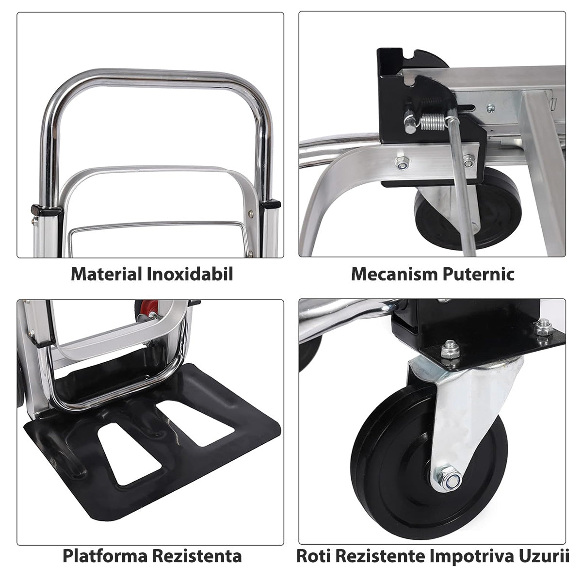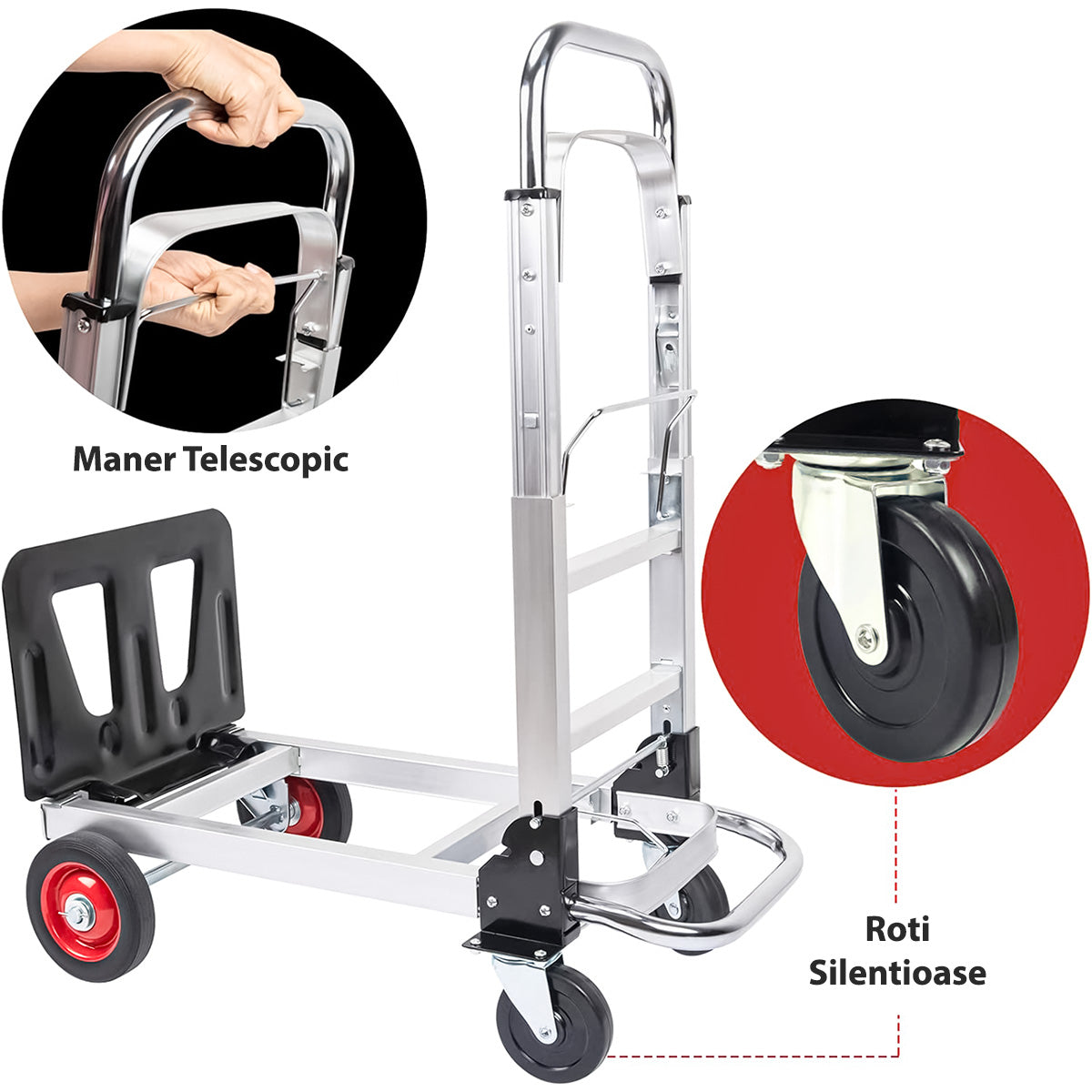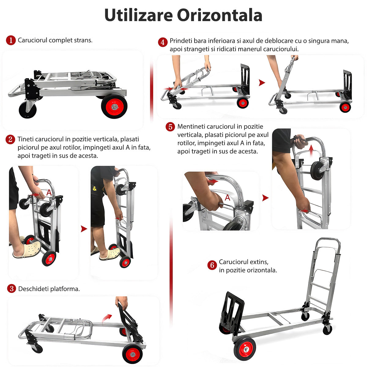 Cu posibilitatea de a fi manevrat in doua pozitii diferite - vertical si orizontal, acest carucior de marfa ofera o versatilitate exceptionala in functie de nevoile tale specifice.
