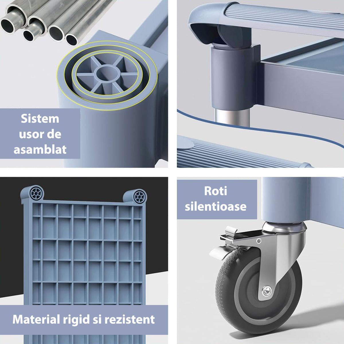 Acestea sunt ușor de curățat și rezistente la pete și zgârieturi, asigurând o întreținere simplă și eficientă a căruciorului.