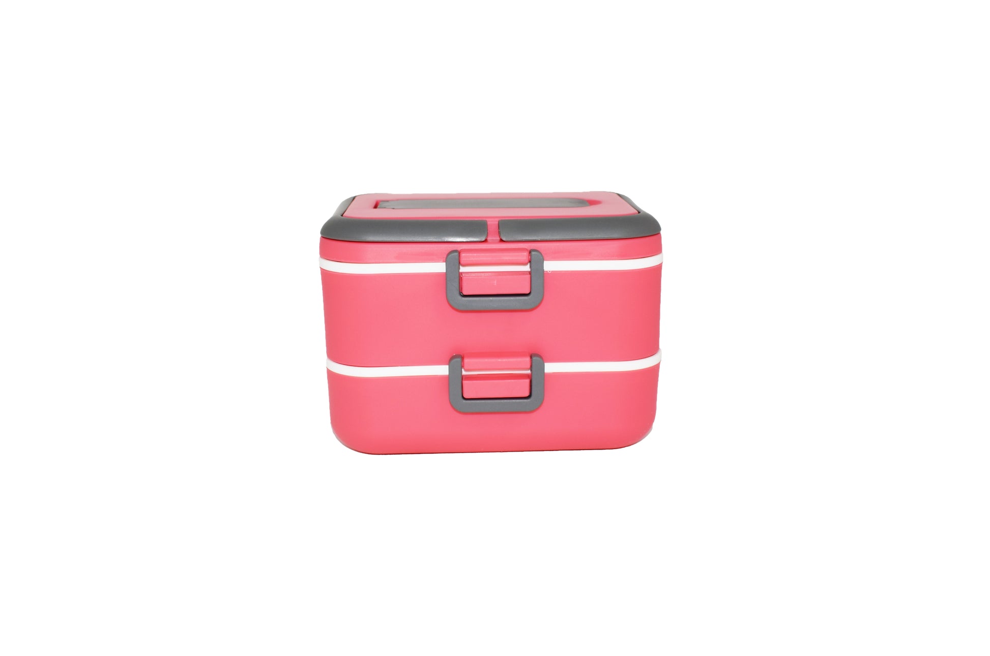 Caserola cu 2 compartimente si lingura D3151, culoare Roz, 18.5x15.5x13 cm 1.5L