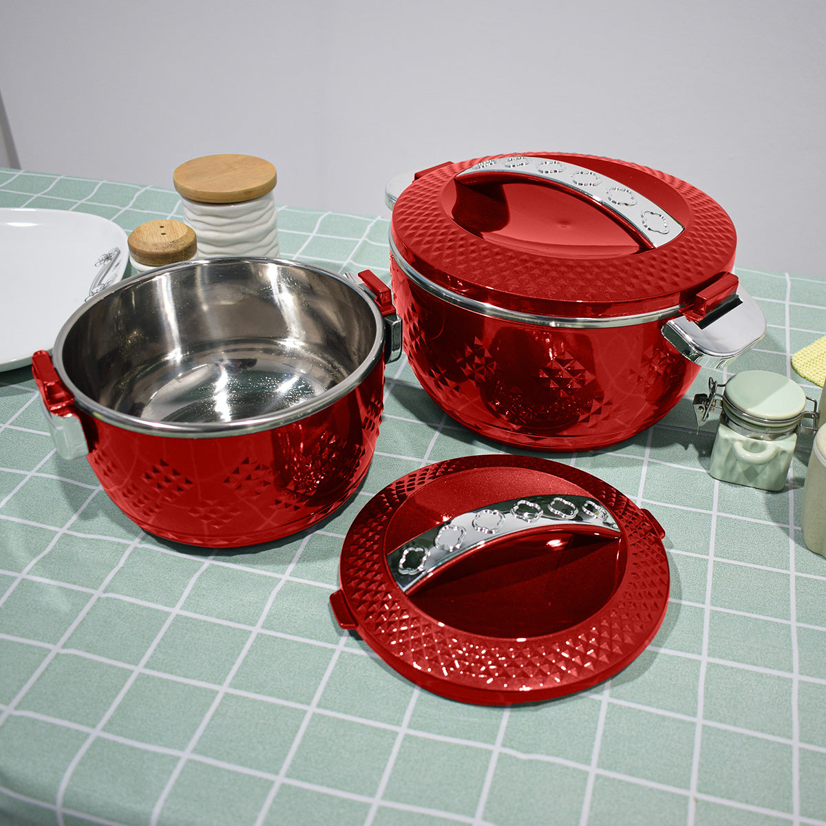 Caserola termica, set 3 piese, cu interior din inox, Naimeed D4811, Rosu