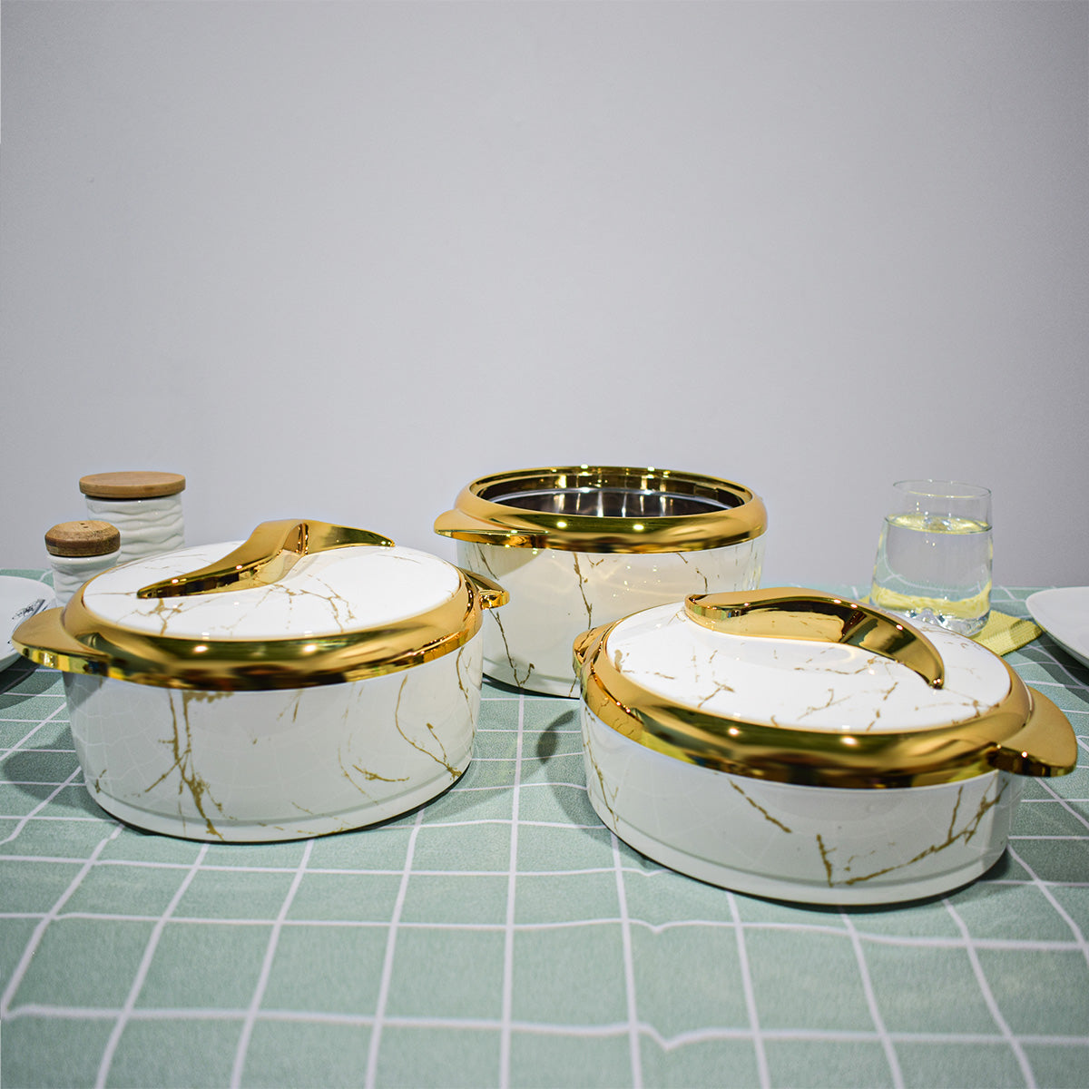Caserola termica, set 3 piese, cu interior din inox, Naimeed D4814, Alb