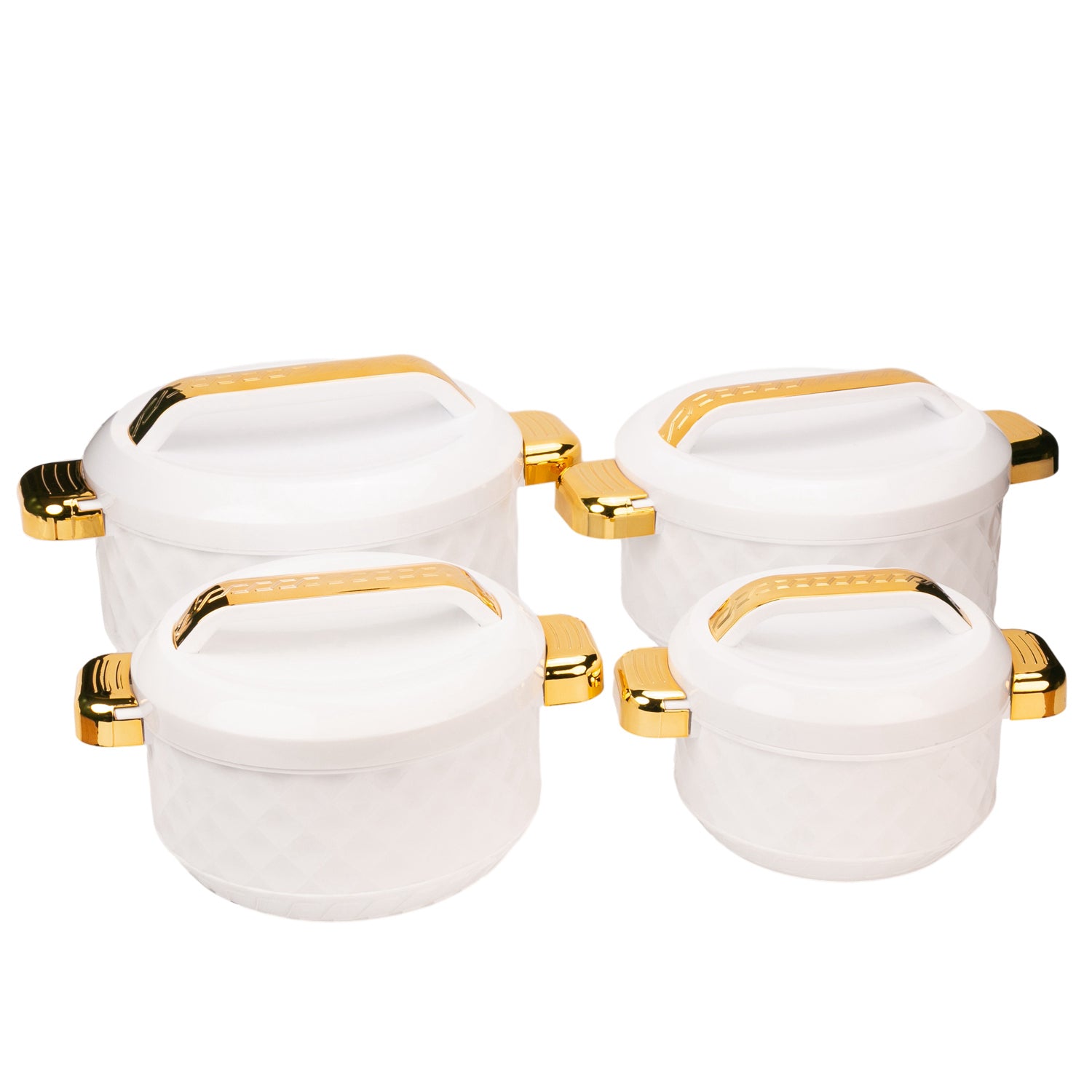 Caserola termica, set 4 piese, Thermo Class, cu interior din inox, Naimeed D6709, Alb