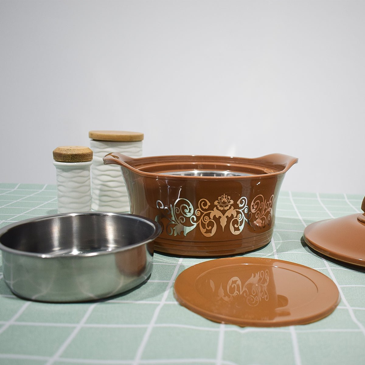 Caserola termica, set 5 piese, interior din inox, Naimeed D4794, Maro