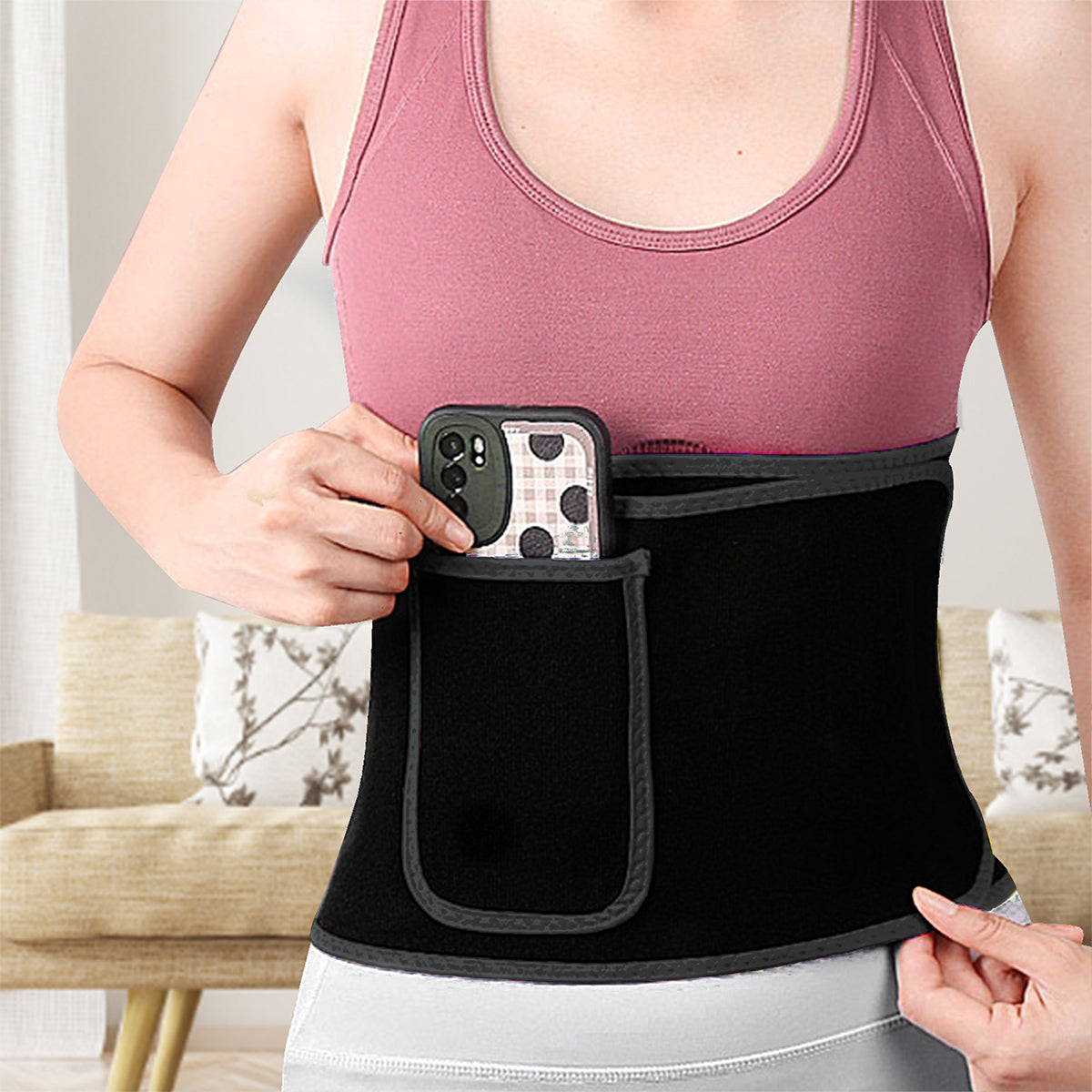 Centura de slabit pentru modelarea corpului, cu buzunar, Negru