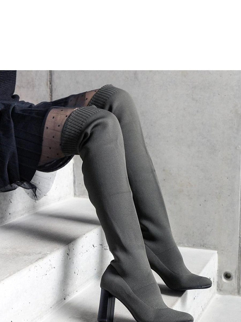 Cizme cu toc Solea, Model 205778, Verde - material pânză Înălţimea tocului 8 cm