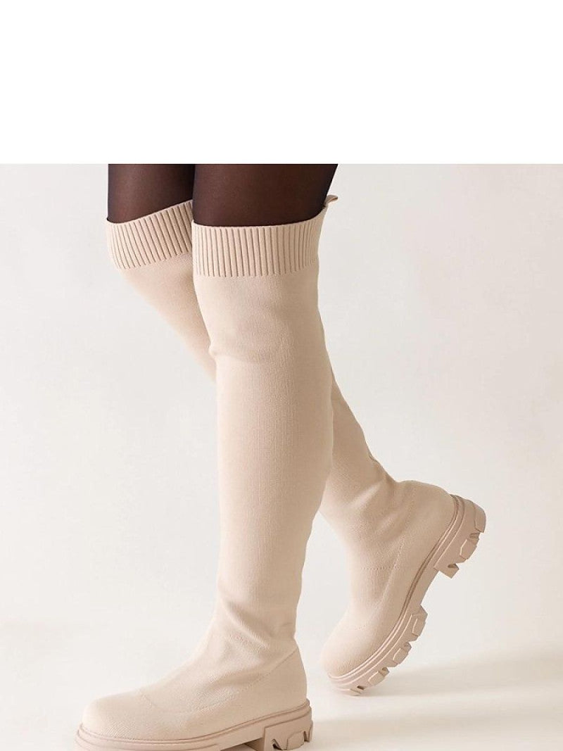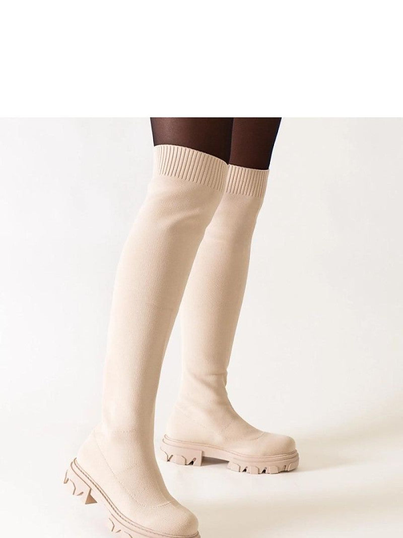Cizme cu toc Solea, Model 206443, Bej - material pânză Înălţimea tocului 4,5 cm