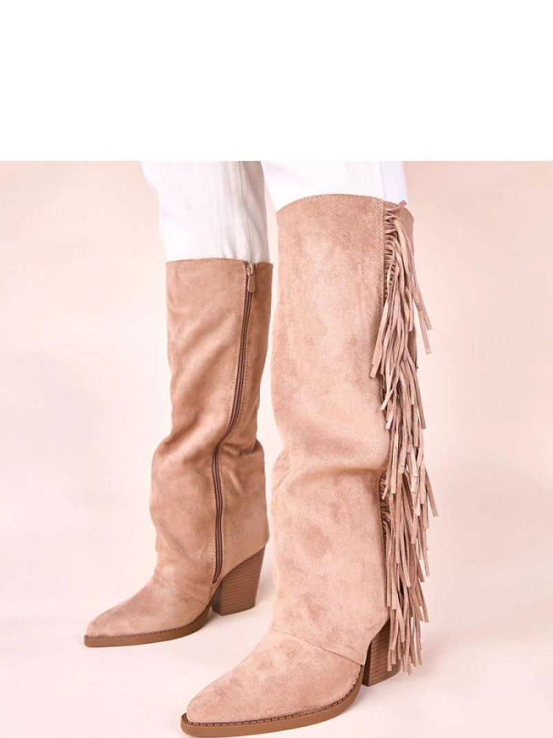 Cizme cu toc Solea, Model 221045, Bej - material piele artificiala piele Footbed pânză Înălţimea carâmbului 34 cm Înălţimea tocului 8 cm