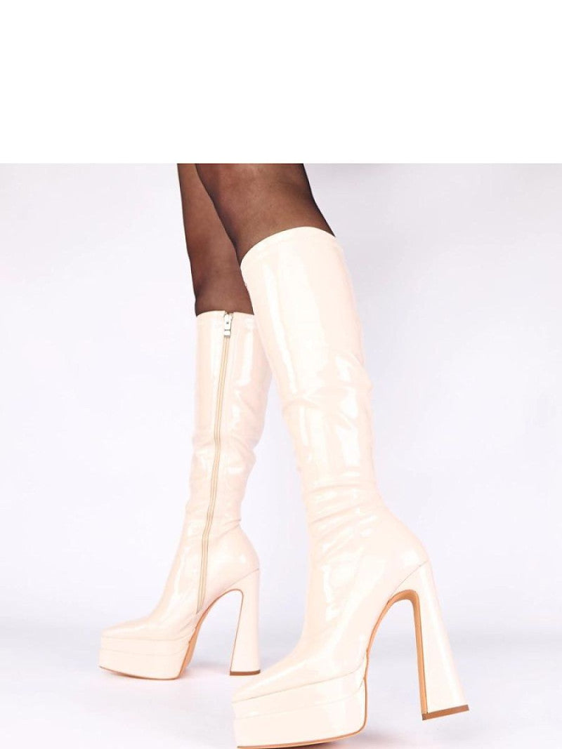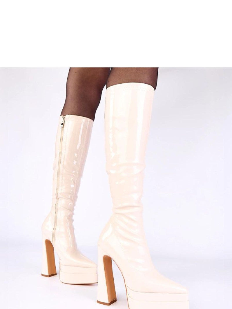 Cizme cu toc Solea, Model 221355, Bej - material imitație de piele Footbed pânză Înălţimea carâmbului 37 cm Înălţimea tocului 15 cm Înălţimea platformei 5 cm