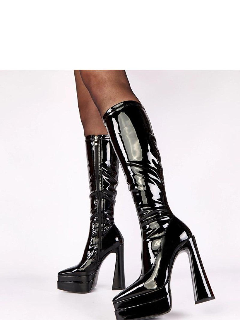 Cizme cu toc Solea, Model 221356, Negru - material imitație de piele Footbed pânză Înălţimea carâmbului 37 cm Înălţimea tocului 15 cm Înălţimea platformei 5 cm