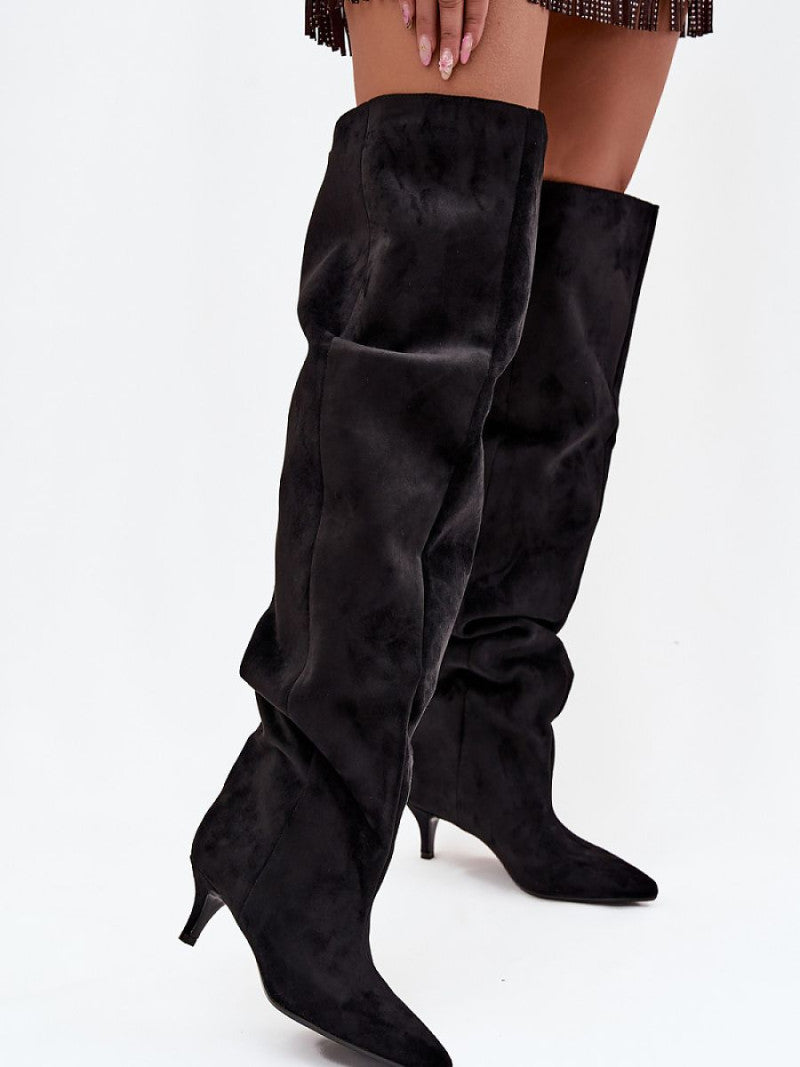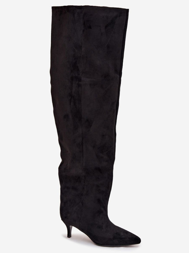 Cizme cu toc Step in style, Model 219139, Negru - material piele artificiala piele Footbed pătură de pantofi Înălţimea carâmbului 65 cm Înălţimea tocului 6 cm