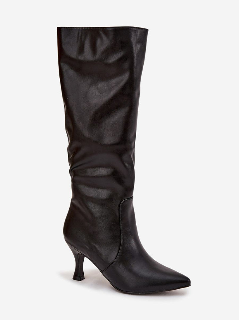 Cizme cu toc Step in style, Model 220724, Negru - material imitație de piele Footbed imitație de piele Înălţimea carâmbului 37 cm Înălţimea tocului 9.5 cm