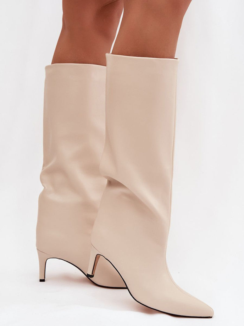 Cizme cu toc Step in style, Model 221144, Bej - material imitație de piele Footbed pătură de pantofi Înălţimea carâmbului 38 cm Înălţimea tocului 7 cm