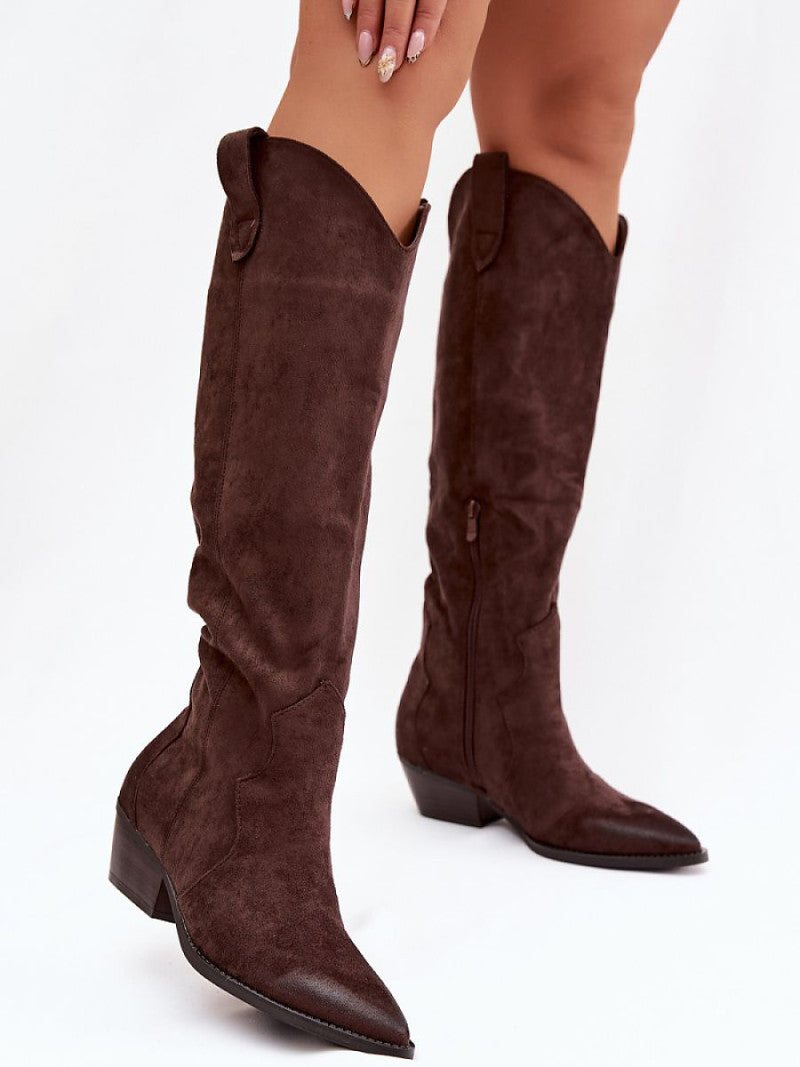 Cizme de cowboy pentru femei din piele ecologică sunt un hit al sezonului! Modelul cu toc tăiat și vârful ascuțit subliniază perfect piciorul și adaugă caracter stilizării. Cizmele sunt încălțate și fermoarul suplimentar de jos facilitează îmbrăcarea. Realizate dintr-o piele ecologică moale, se încadrează perfect în look-urile moderne și casual, arătând excelent cu rochii, fuste și blugi skinny.