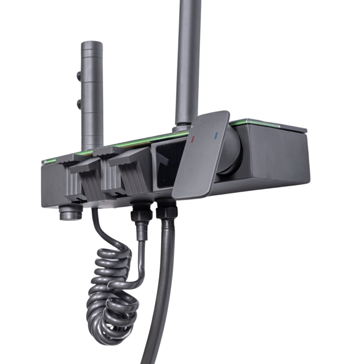Coloana de dus, cu para fixa si para mobila, Naimeed D6147, 4 functii, otel inoxidabil, Gri