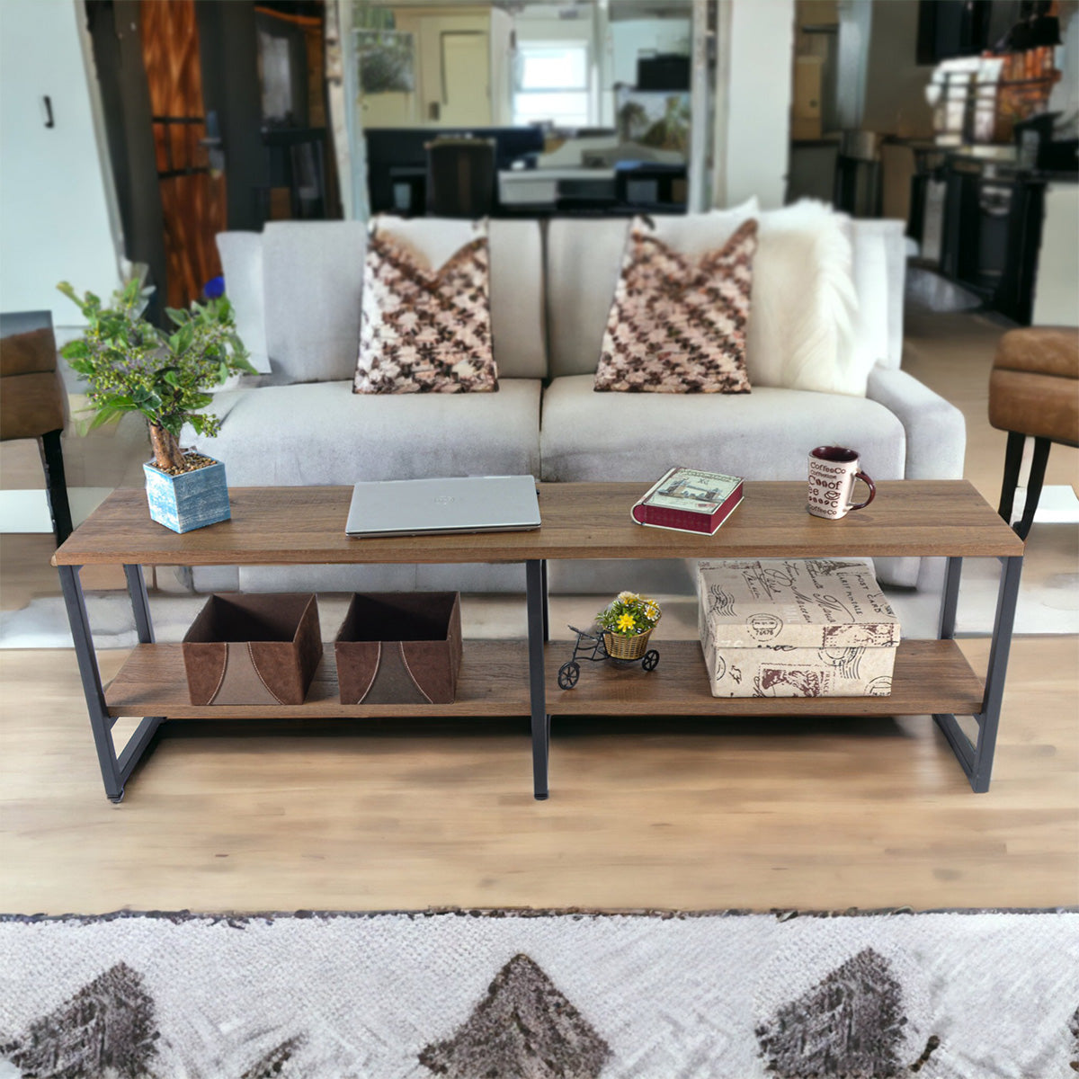 Cele doua polite spatioase ofera spatiu de depozitare suplimentar pentru a organiza echipamentele multimedia, carti sau accesorii.