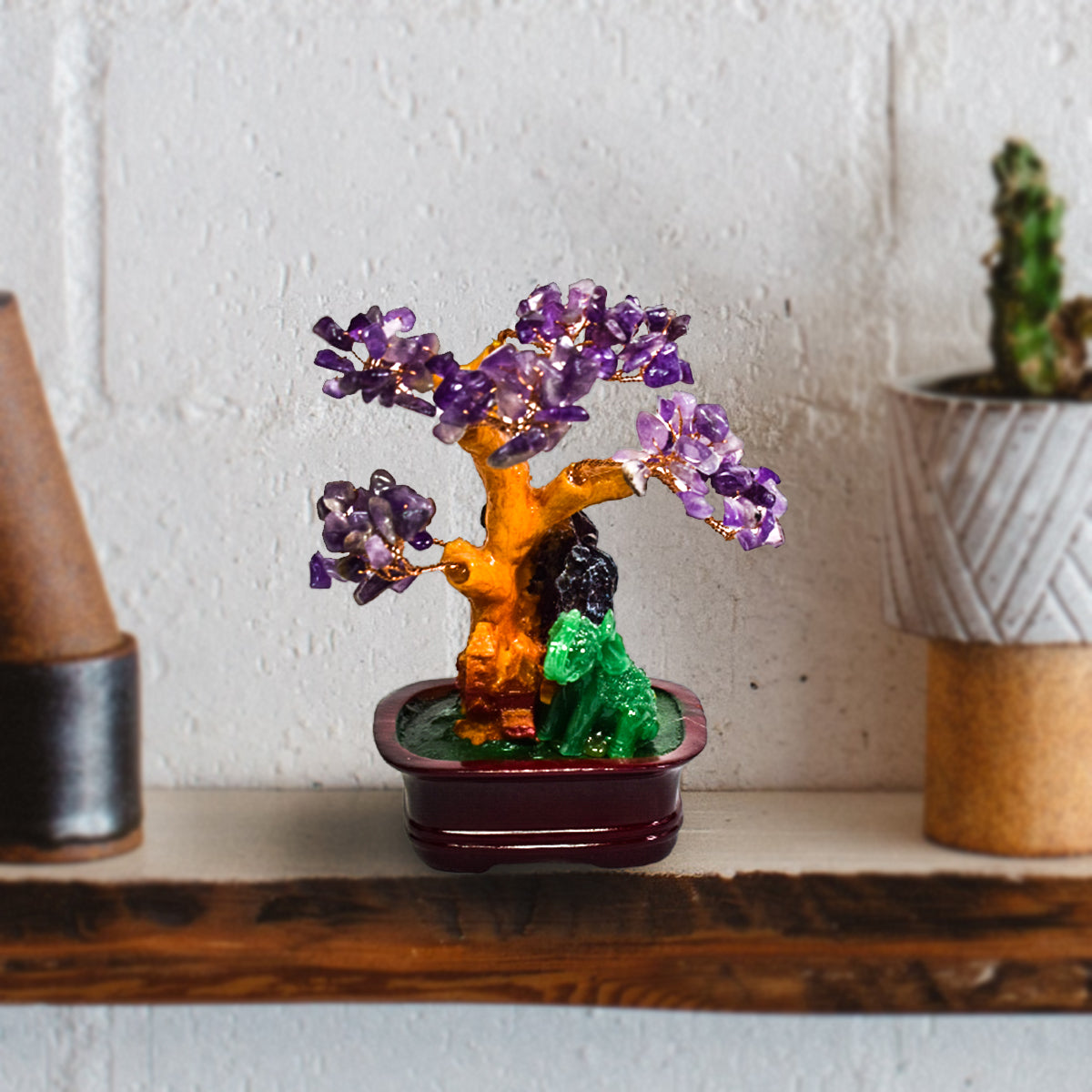 Copac Feng Shui cu Pietre Semipretioase de Ametist, Naimeed D4623-Mov, Inaltime 16cm
