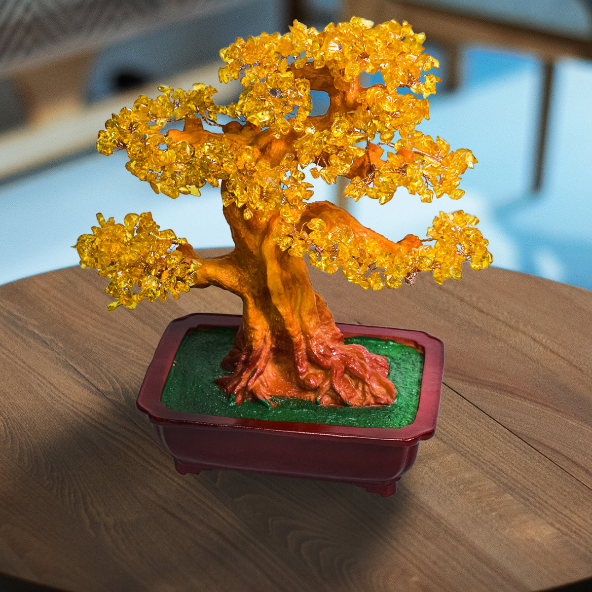 Copac Feng Shui cu Pietre Semipretioase de Citrin, Suport Ceramic, Naimeed D4626-Galben, Inaltime 37cm
