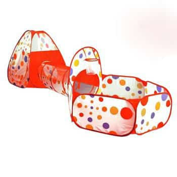Setul de joaca ce contine un cort, un tunel si un tarc este ideal pentru copiii cu imaginatia dezvoltata unde se pot juca cu mingiile sau ca o ascunzatoare . Cele 3 piese se pot imbina intre ele formand un centru de joaca si distractie pentru cei mici.