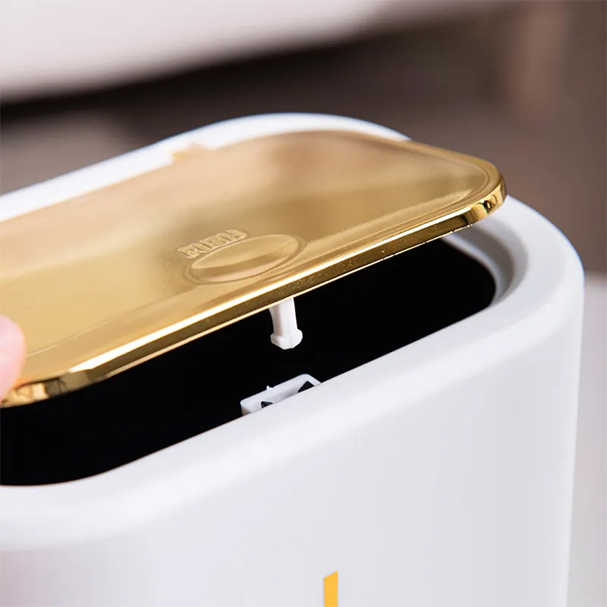 Unul dintre punctele sale distinctive este capacul cu sistem de deschidere prin apasare, care ofera o modalitate usoara si igienica de a arunca deseurile.