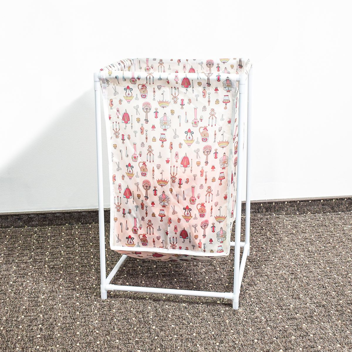 Imprimeul de pe cosul de rufe transforma acest obiect de uz casnic intr-un element de design in propria casa.