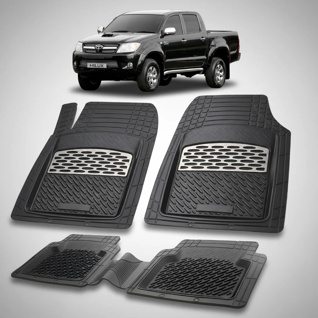 Protejeaza interiorul masinii tale Toyota Hilux cu setul complet de covorase auto tip tavita, compatibile si ajustabile. Fabricate din cauciuc 100% reciclat, fara miros, cu margini inaltate de 3 cm si zona de uzura ranforsata cu 35% in plus.