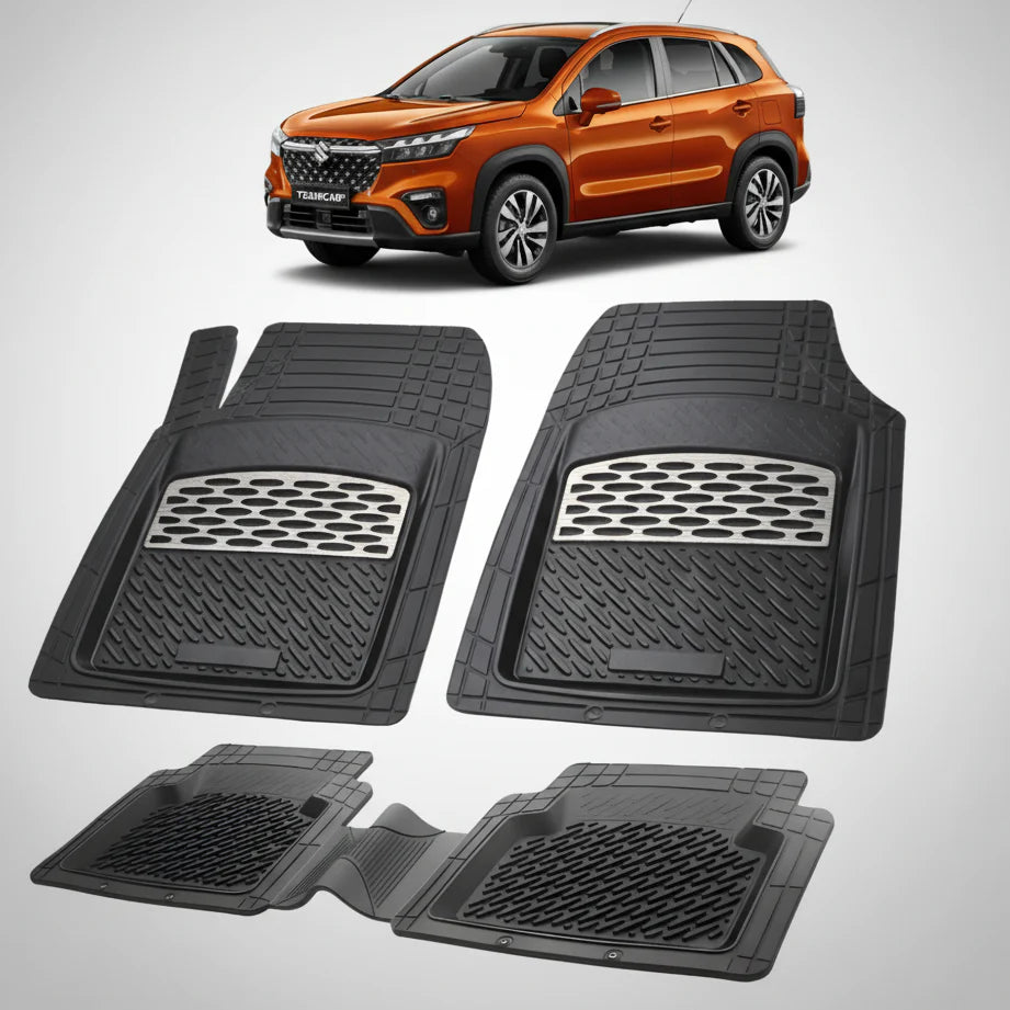 Protejeaza interiorul masinii tale Suzuki SX4 S-Cross II SUV cu setul complet de covorase auto tip tavita, compatibile si ajustabile. Fabricate din cauciuc gros 100% reciclat, fara miros, cu margini inaltate de 3 cm si zona de uzura ranforsata cu 35% in plus.