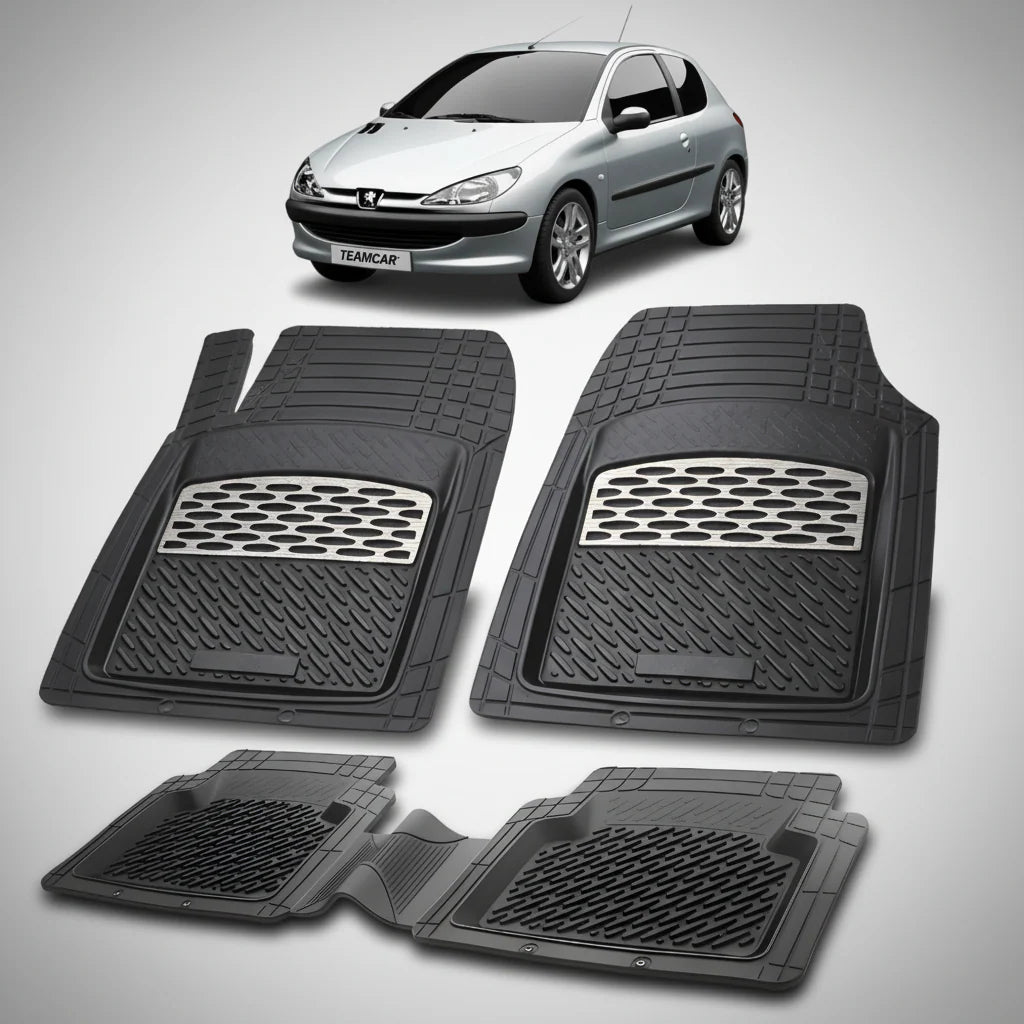 Protejeaza interiorul masinii tale Peugeot 206 cu setul complet de covorase auto tip tavita, compatibile si ajustabile. Fabricate din cauciuc 100% reciclat, fara miros, cu margini inaltate de 3 cm si zona de uzura ranforsata cu 35% in plus.