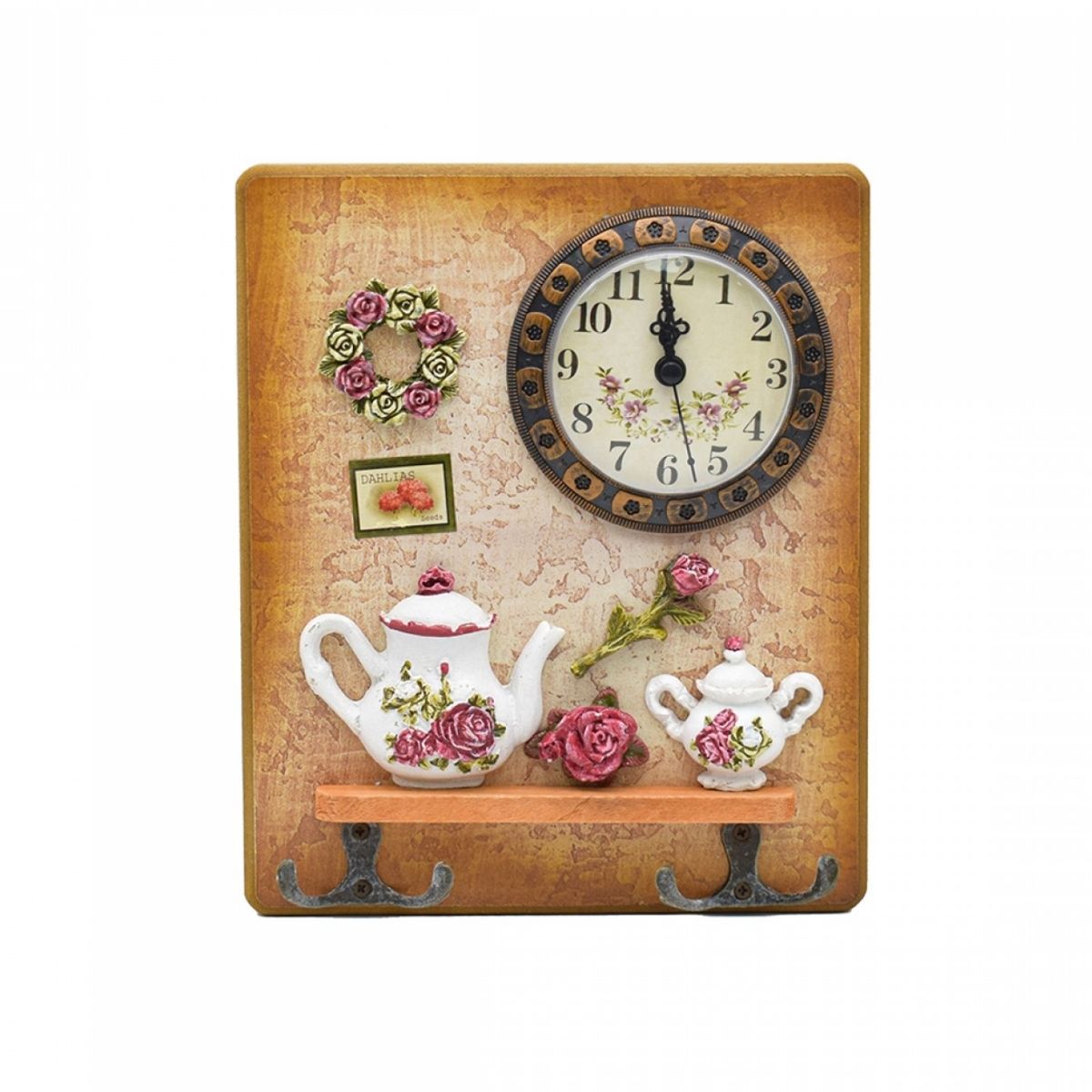 Cuier decorativ cu 2 carlige duble, Naimeed D58-2, 18.5x22x0.8 cm, Maro
