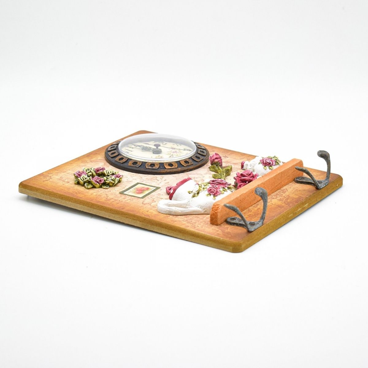 Cuierul decorativ cu model în relief și 3 cârlige metalice, ideal pentru organizarea spațiului într-un mod practic și estetic.