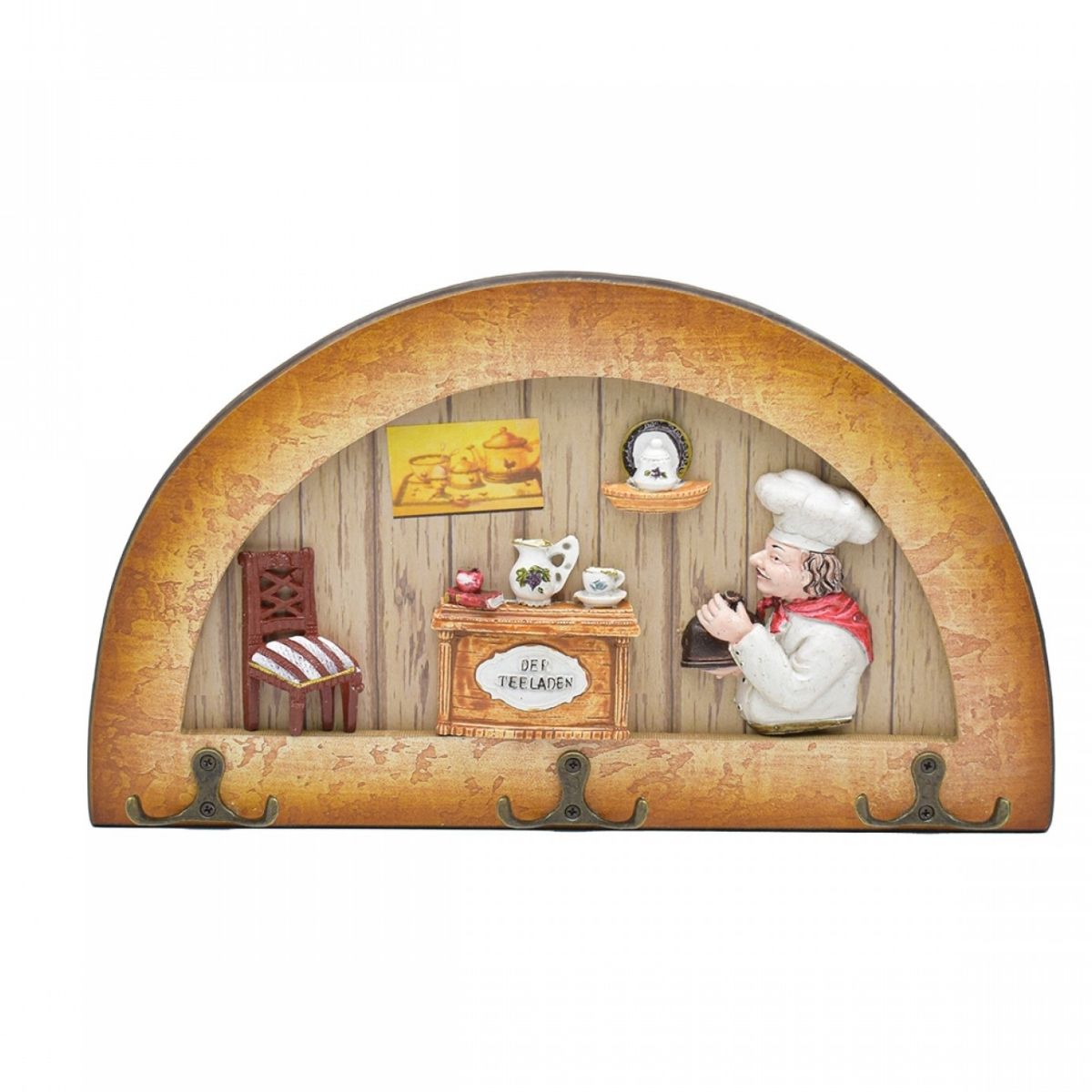 Cuier decorativ cu 3 carlige, Naimeed D61-10, 34x19.5x1 cm, Maro