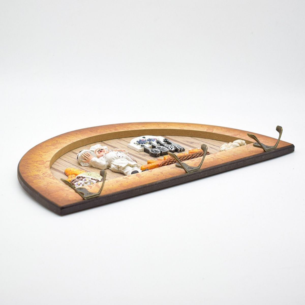 Cuier decorativ cu 3 carlige, Naimeed D61-11, 34x19.5x1 cm, Maro
