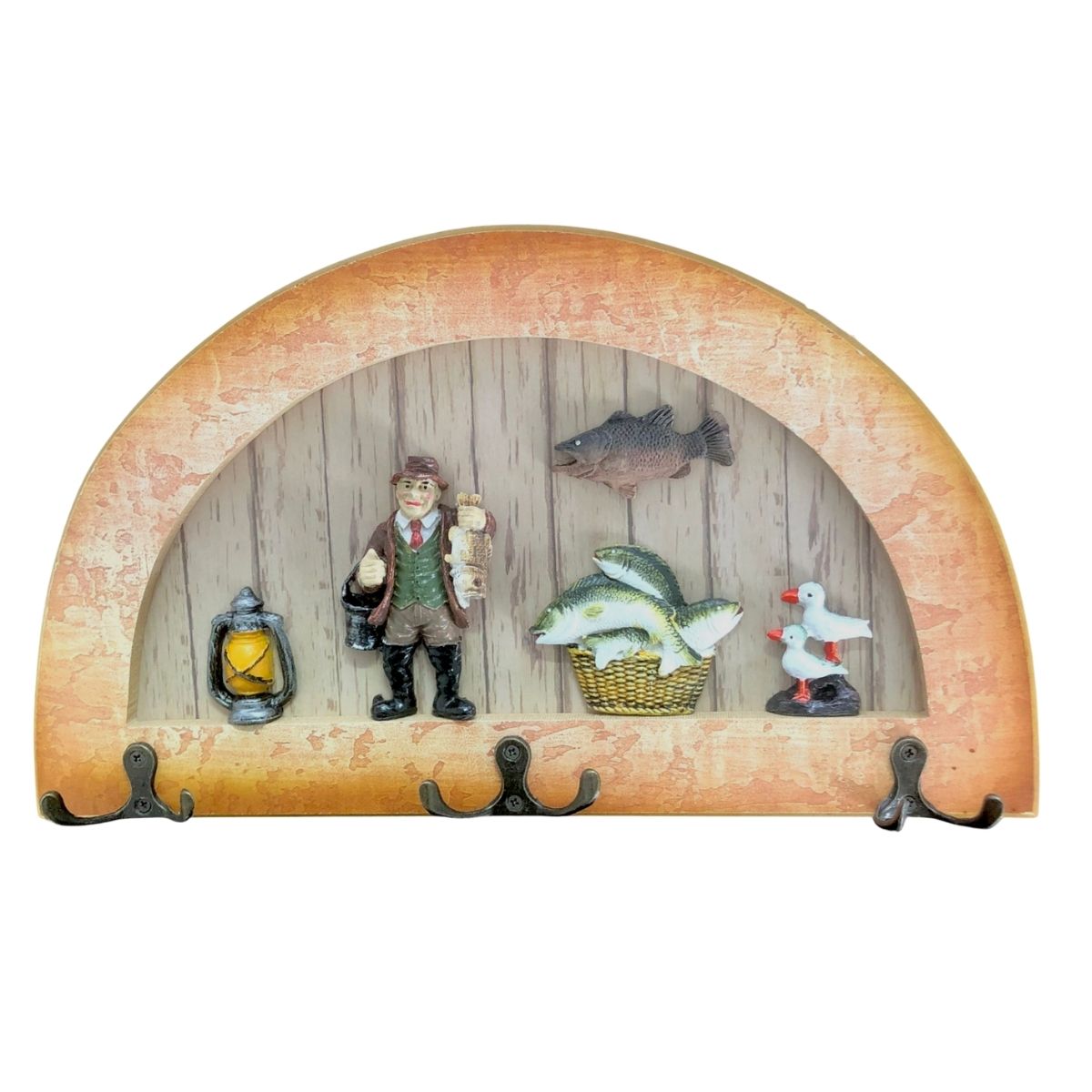 Cuier decorativ cu 3 carlige, Naimeed D61-7, 34x19.5x1 cm, Maro