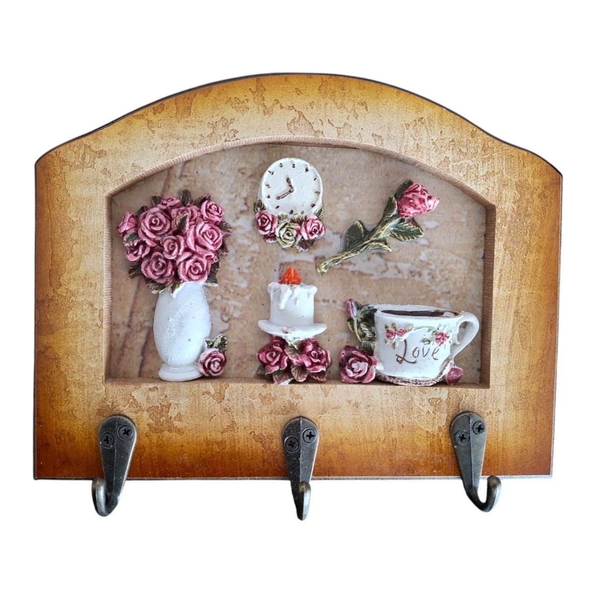 Cuier decorativ cu 3 carlige, Naimeed D65-7, 20x15.5x0.8 cm, Maro