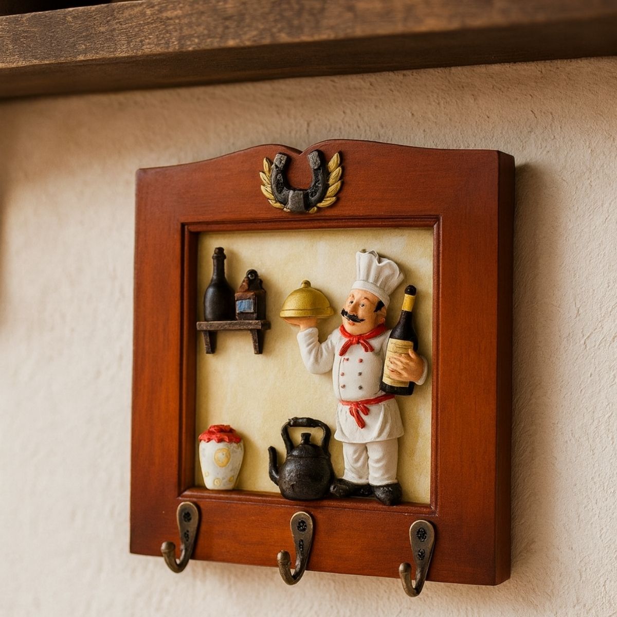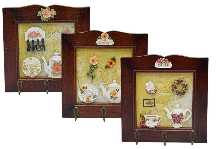 Cuierul decorativ cu model în relief și 3 cârlige metalice, ideal pentru organizarea spațiului într-un mod practic și estetic.