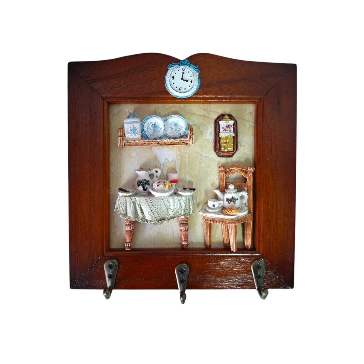 Cuier decorativ cu 3 carlige, Naimeed D66-8, 21x21x1.3cm, Maro