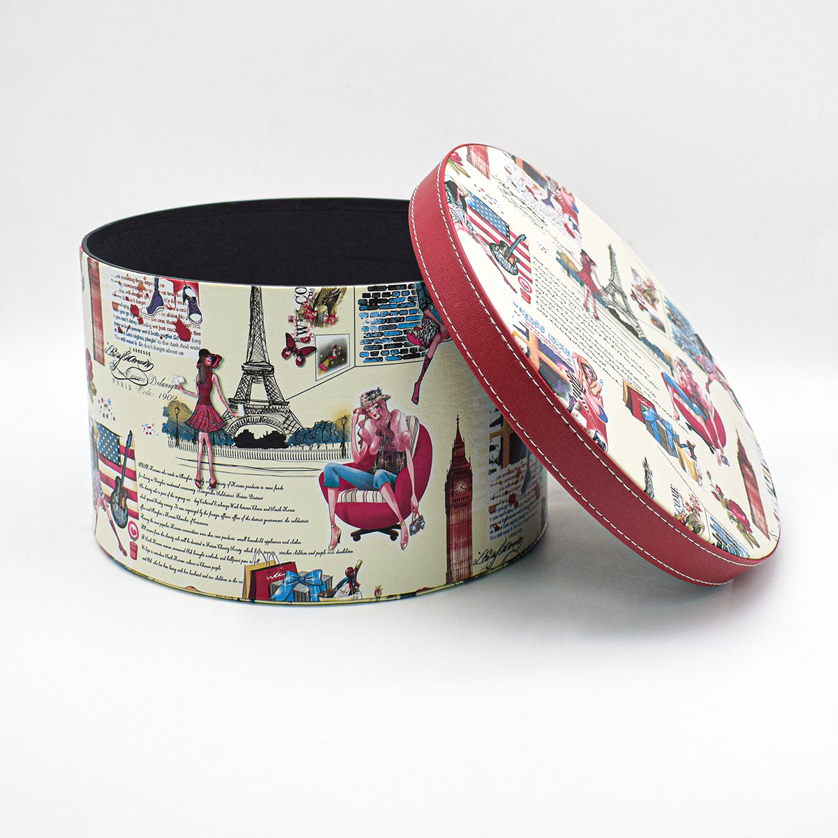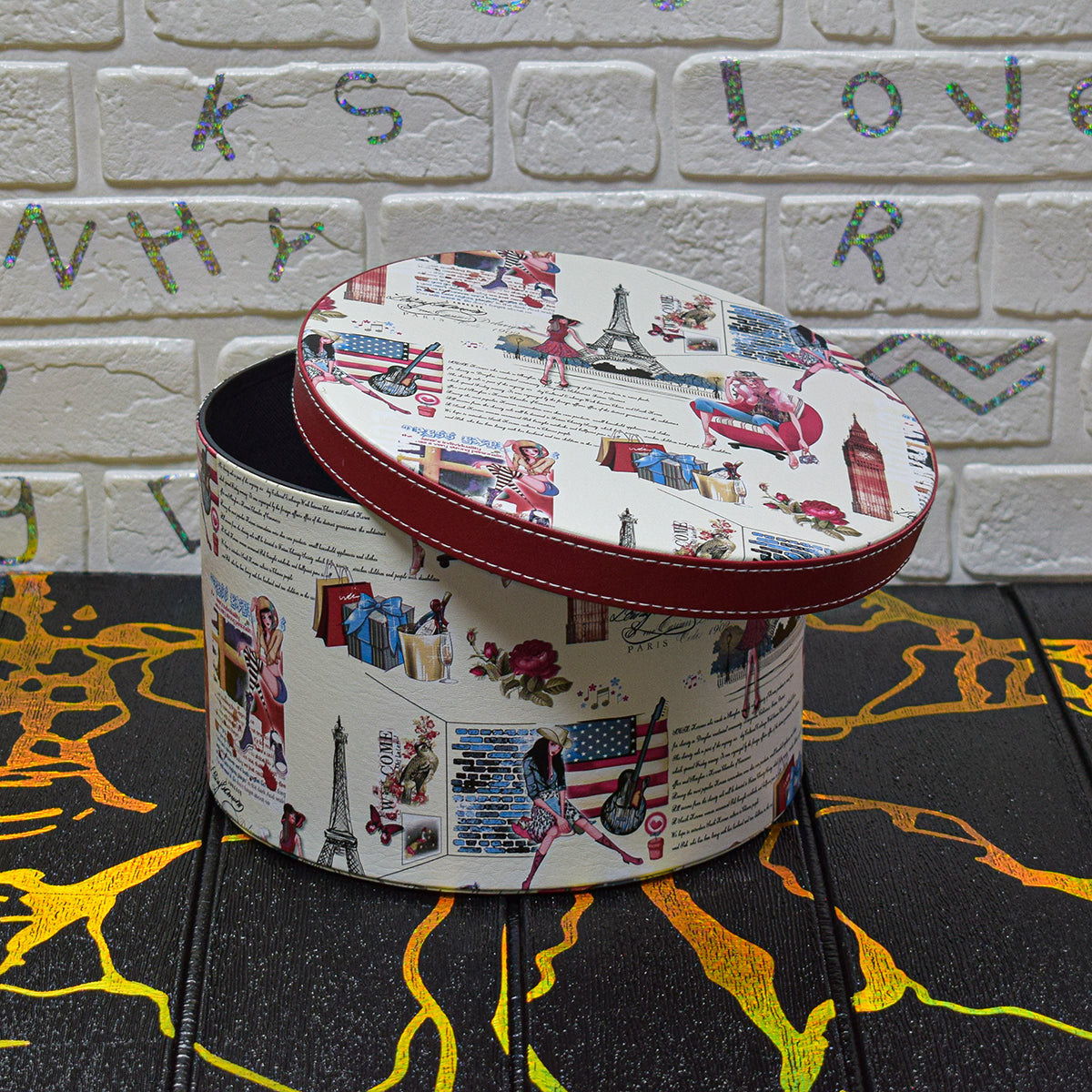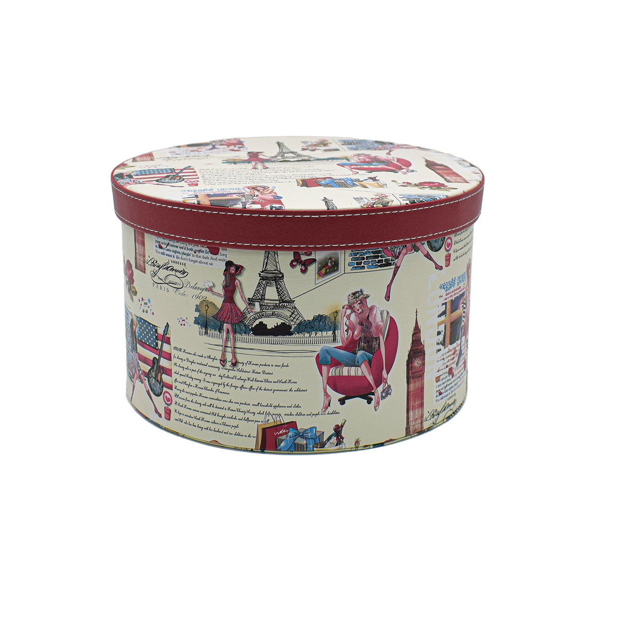 Cutie depozitare, decor, cu grafica, D40, 19x30cm, alb/rosu