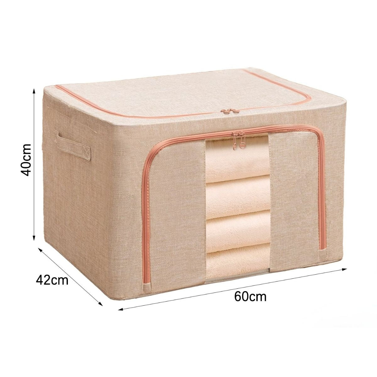 Cutie Depozitare Multifunctionala, cu Cadru Metalic, Fermoar Dublu și Ferestre Transparente, Naimeed D7650, dimensiuni 60x42x40cm, Crem
