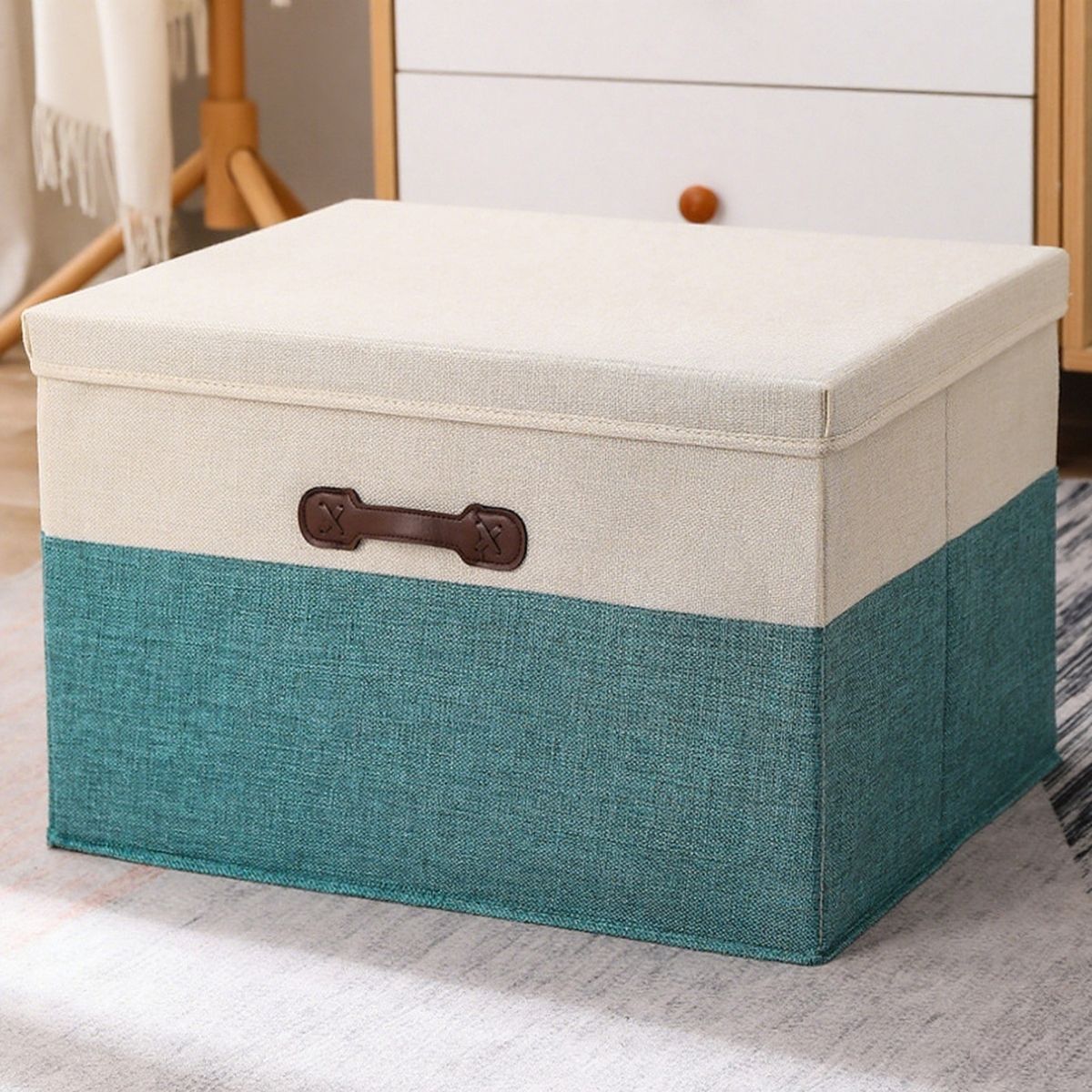 Cutie Depozitare Multifunctionala, Naimeed D7643, pliabilă, cu capac, dimenisuni 45x35x29cm, Turcoaz