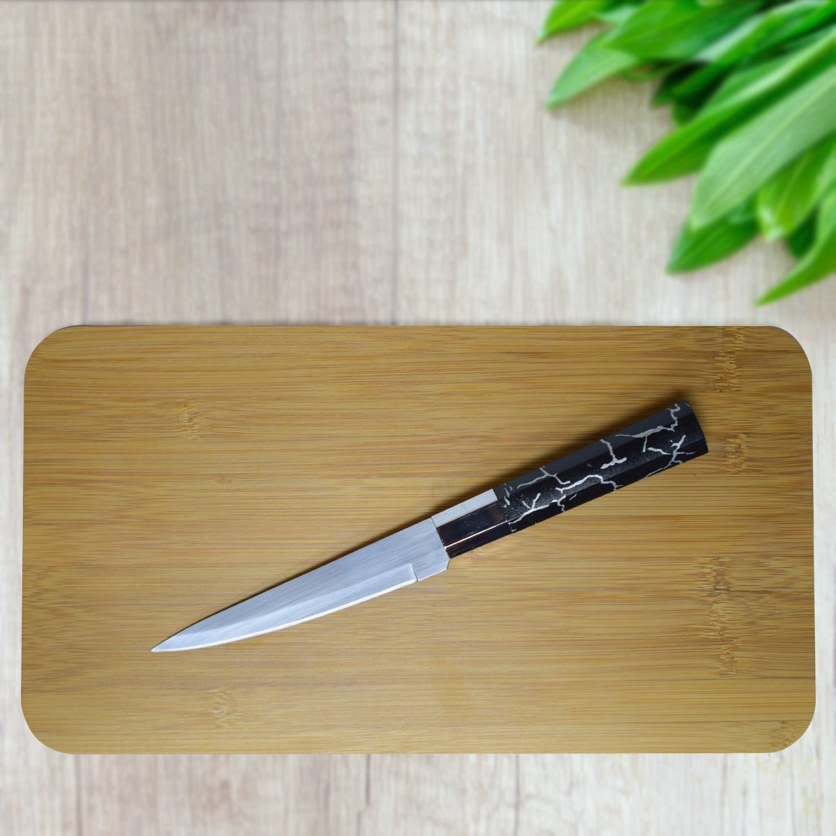 Lama este fabricata din otel inoxidabil, si are 12cm lungime, este ideala pentru taierea legumelor in mod precis si rapid.