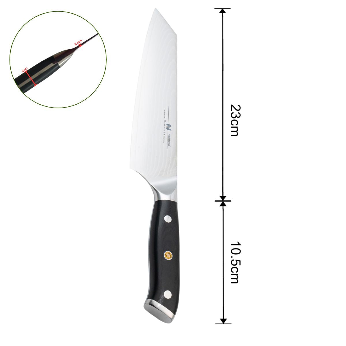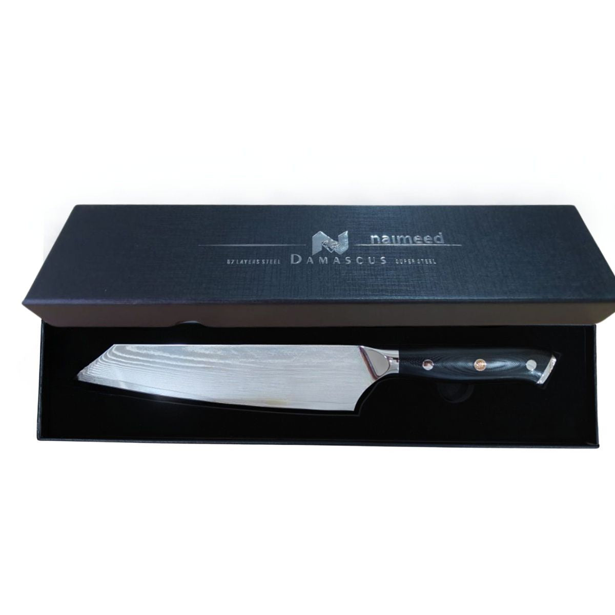 Cutit de bucatar, din otel Damascus, Naimeed D6825, damasc 67 straturi, 33.5 cm, , Negru